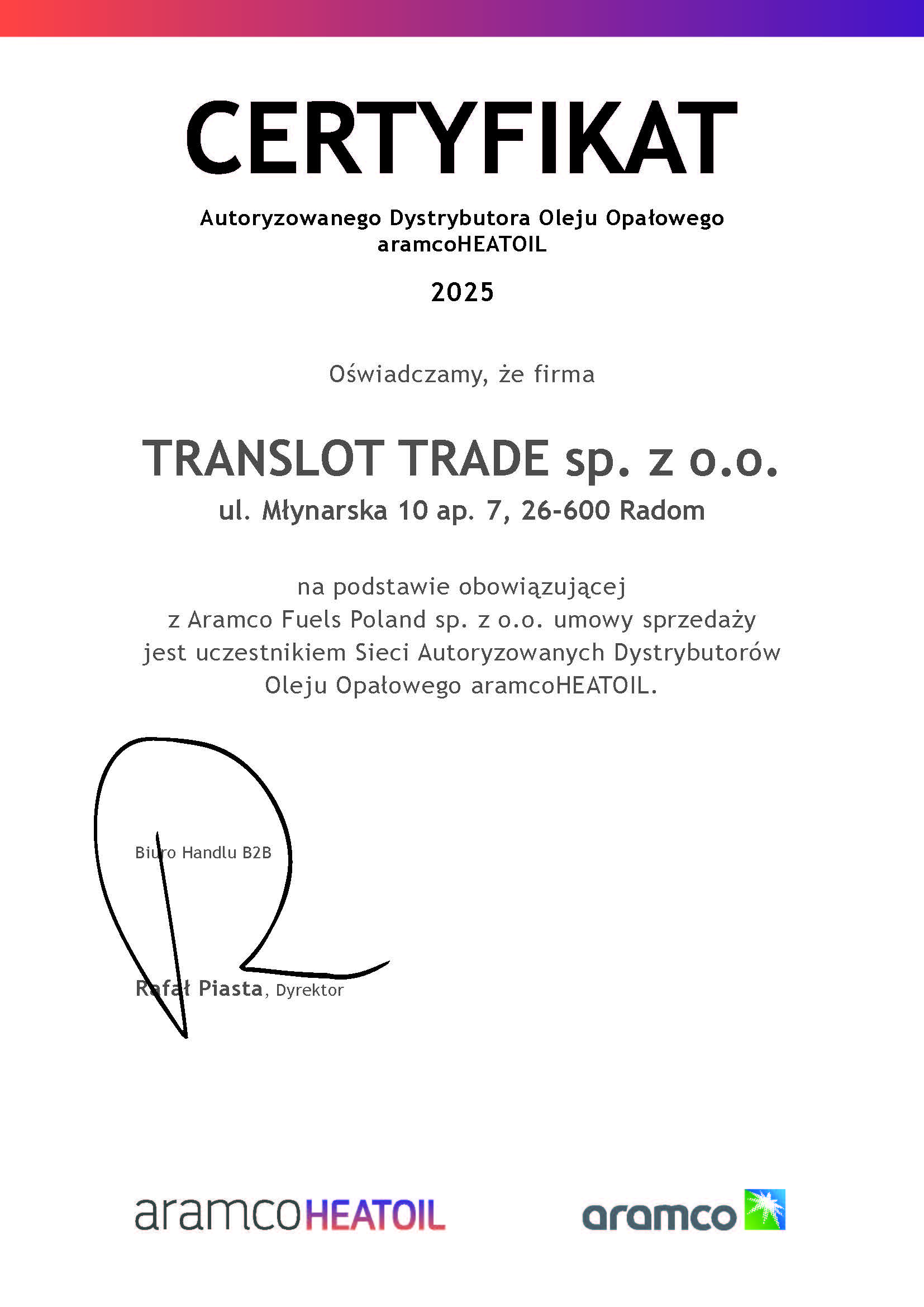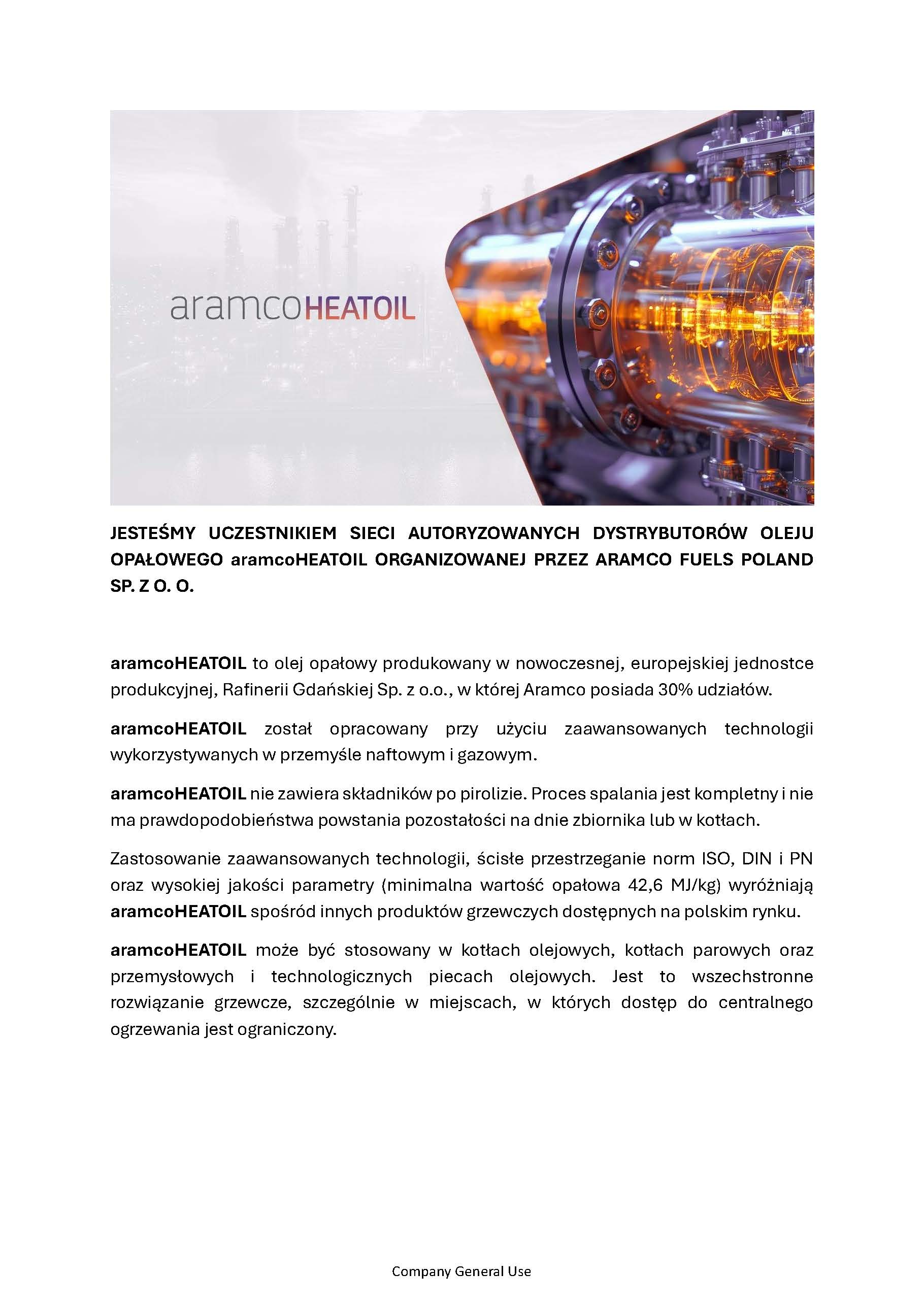 JESTEŚMY UCZESTNIKIEM SIECI AUTORYZOWANYCH DYSTRYBUTORÓW OLEJU OPAŁOWEGO aramcoHEATOIL ORGANIZOWANEJ PRZEZ Aramco Fuels Poland.