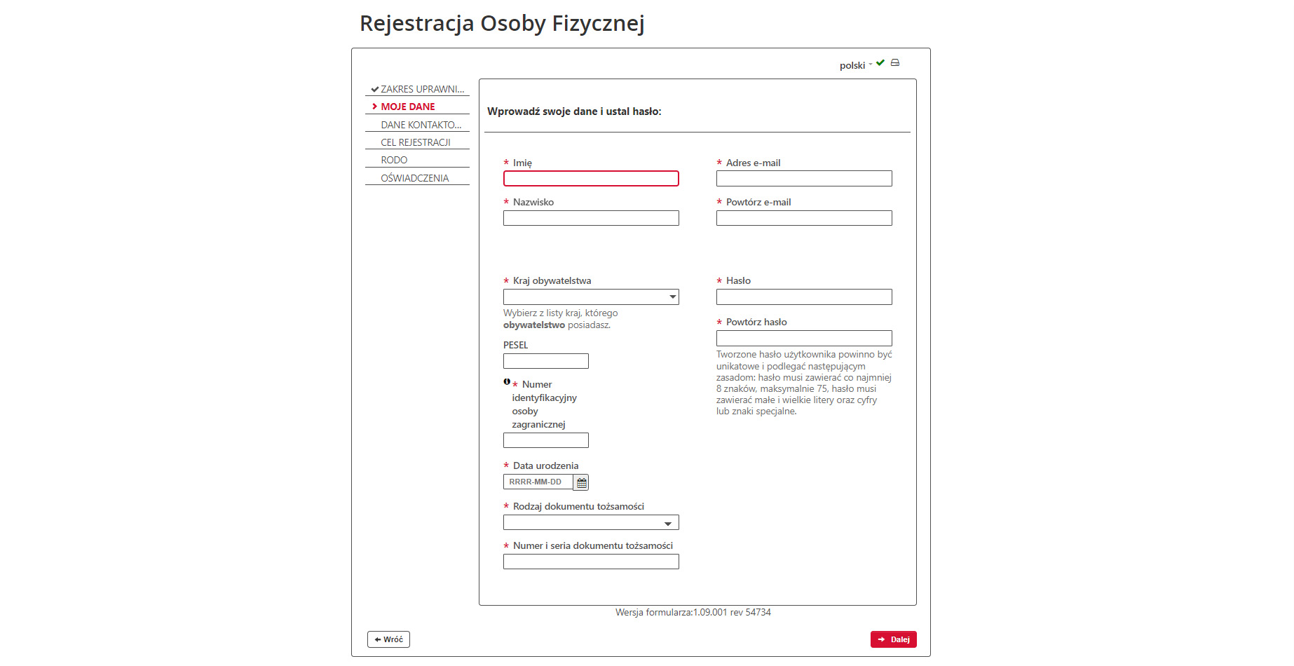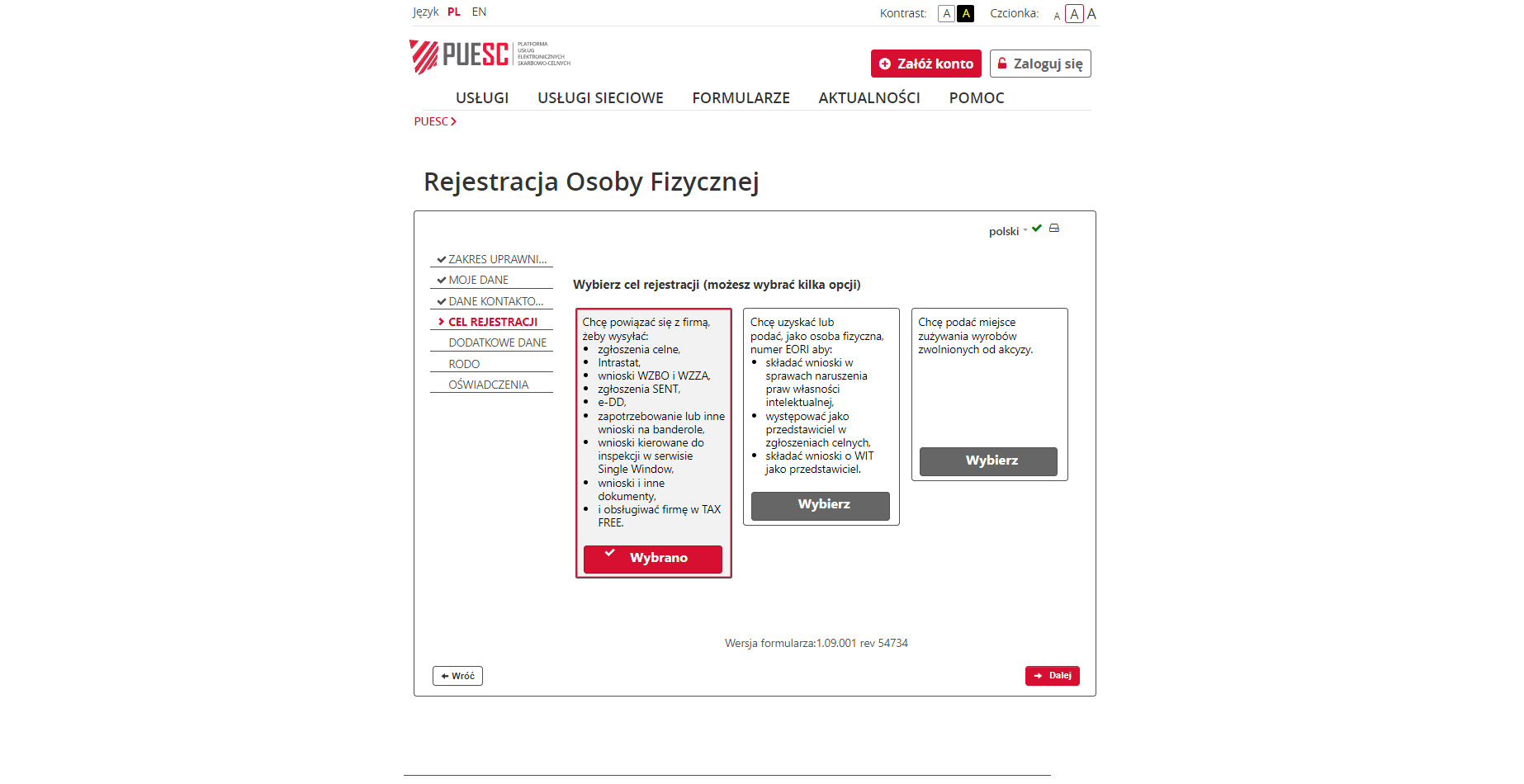 Podaj cel rejestracji