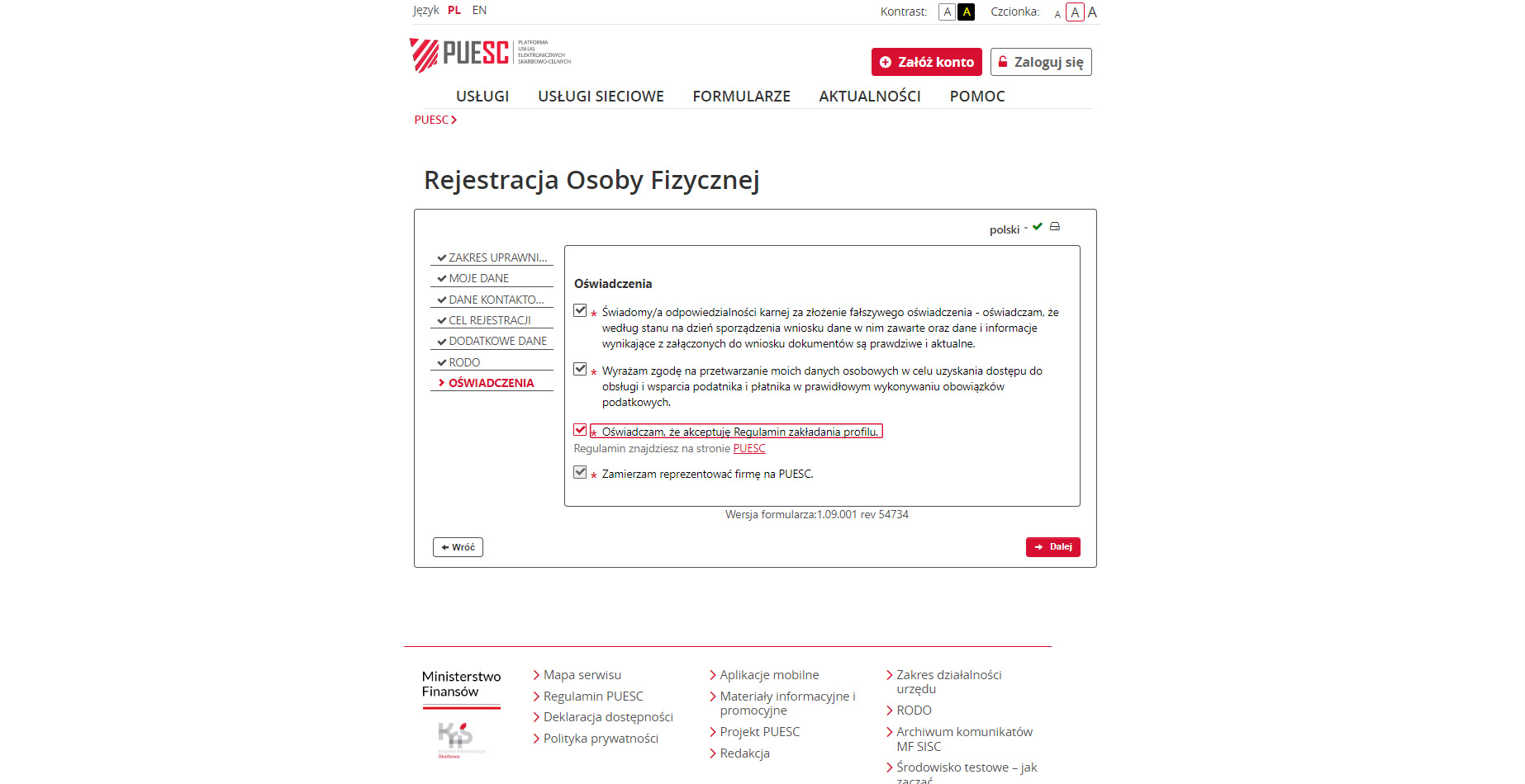 Zakceptuj niezbędne oświadczenia