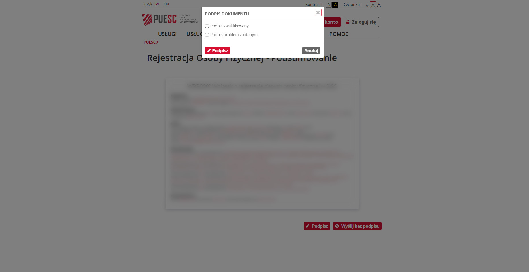 Zapoznaj się z podsumowaniem, sprawdź poprawnośc danych i podpisz cyfrowo